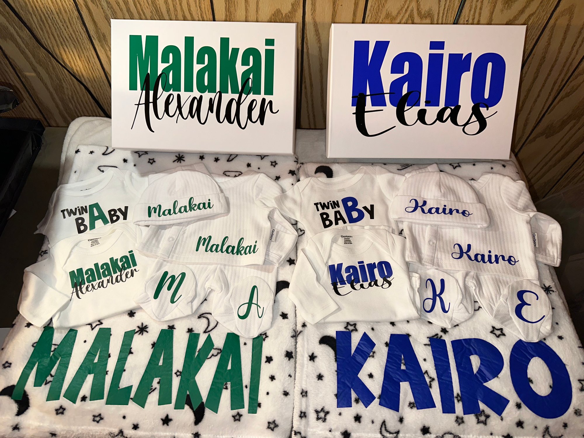 **Make sure you send us the name ,size, (newborn-6-9months) two colors, theme and who the gift is from for your box!**